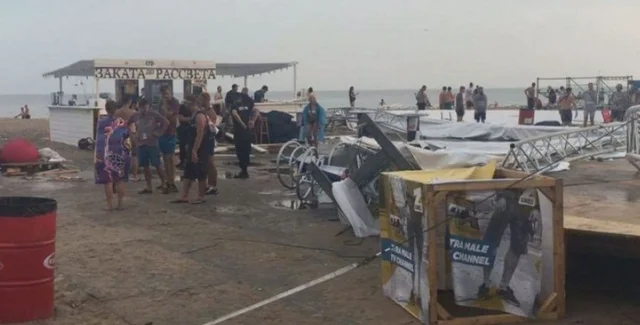 Кроме того, из-за ураганного ветра обрушились конструкции сцены, травмировав нескольких человек