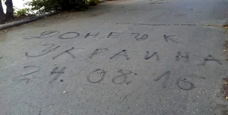 Также пользователи соцсетей сообщают, что на улицах Донецка появились надписи "Донецк. Украина. 24.08.2016".