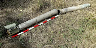 Реактивный снаряд в Красногоровке / Фото: Пресс-центр штаба АТО