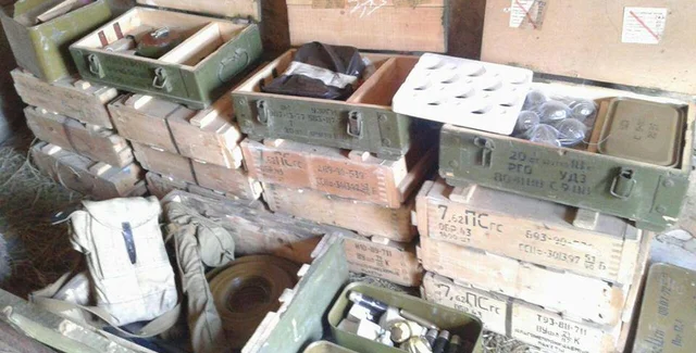 В тайнике были десятки ящиков с патронами, мины и гранаты