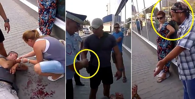 На видео также видно, что когда на место происшествия приехали полицейские, мужчина, избивший украинца, пожал руку полицейским. Пользователи соцсетей пишут, что это был российский полицейский в штатском.