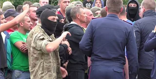 "Работников оперативного штаба окружило около 200 мужчин в масках, камуфлированной одежде с палками и битами в руках. Разъяренные молодые люди перекрыли все выезды и подъезды к урочищу. Несколько лиц призвали толпу к захвату автомобиля и оружия. Злоумышленники крушили служебное авто и бросали камни в полицейских", - сказано в сообщении.