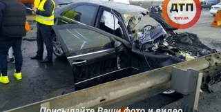 В Киеве на мосту Патона произошло масштабное ДТП: водитель Mercedes-Benz на огромной скорости врезался в попутную автоцистерну, встречный легковой Сitroen и загорелся.