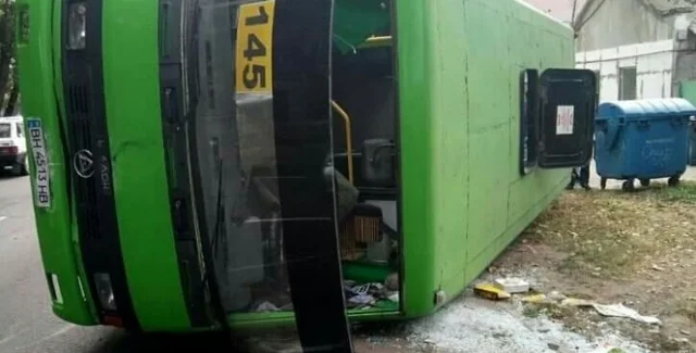 В Одессе в воскресенье днем во время движения перевернулся маршрутный автобус с пассажирами, семь человек травмированы.