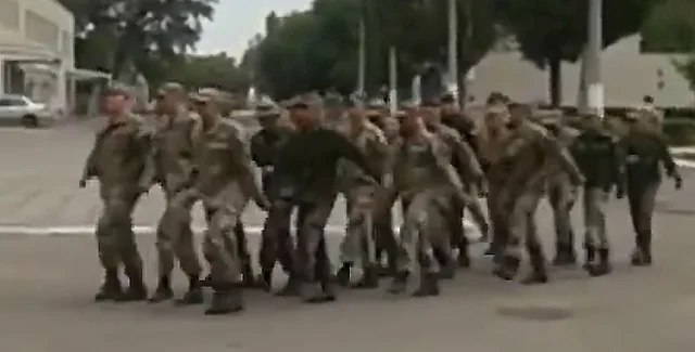 На видео попавшиеся на пьянстве солдаты маршируют по плацу под речевку: "Пить! Я! Больше! Не буду!"