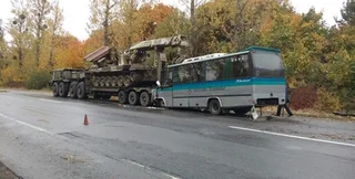 8 октября возле села Митков Гайсинского района Винницкой области произошло дорожно-транспортное происшествие с участием пассажирского автобуса и военного тягача.