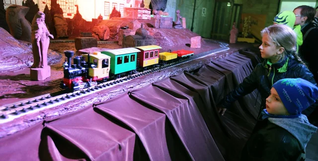 Гостей праздника поражают шоколадными художественными инсталляциями: 5-метровой шоколадной мельницей и гигантской 9-метровой шоколадной коробкой конфет. Маленьких гостей на празднике развлекает 3-метровый шоколадный медведь.