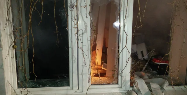 Людям удалось поджечь один из офисов, в здании на первом этаже пожар. Приехали пожарные. Здание оцеплено, пожарные тушат пламя.