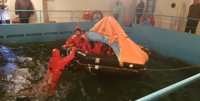 Также отработали спуск на воду спасательных шлюпок и плотов, запуск их двигателей, прыжки в воду со спасательными средствами.