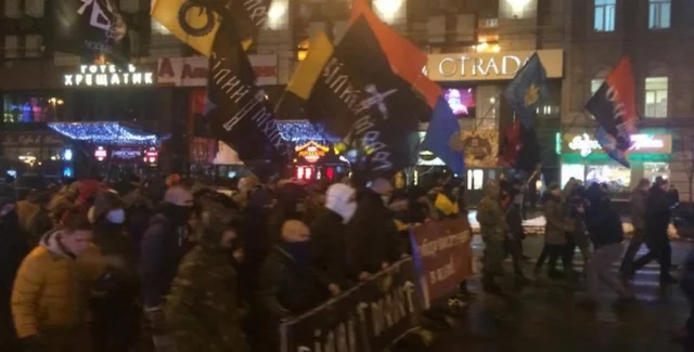 Возглавлять марш, напоминая о событиях 1 декабря 2013 года, должен был грейдер, но ни одна строительная компания не согласилась предоставить его в аренду националистам.