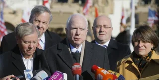 Во время визита в Грузию сенаторы побывали, в частности, на де-факто границе самопровозглашенной республики Южная Осетия. Назвав действия России в Южной Осетии и Абхазии "оккупацией и агрессией со стороны России", сенатор высказался за ужесточение санкций против Москвы. Его однопартиец Грэм отметил, что санкции должны ощутимо задеть лично президента РФ Владимира Путина.