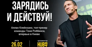 26 февраля по приглашению инновационного пространства HUB 4.0 в Киеве пройдет однодневный семинар Аллана Клейнханса, ученика и ведущего VIP-сессий Тони Роббинса
