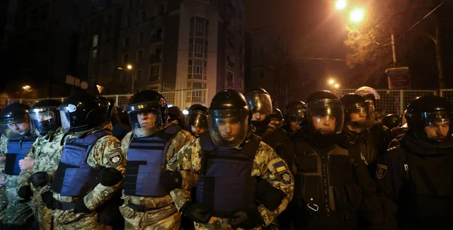 В воскресенье, 19 февраля, в центре Киева во время акций протеста произошли столкновения между членами добровольческого движения "Организация украинских националистов", а также сторонниками торговой блокады оккупированных районов Донбасса - с одной стороны, и полицейскими – с другой.