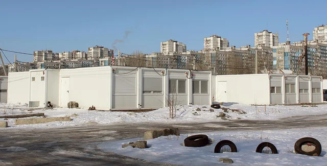 В одном из спальных районов Днепра, всего в десяти метрах от стройки, стоят металлопластиковые домики для переселенцев из Донбасса. Для многих это жилье — единственный островок безопасности