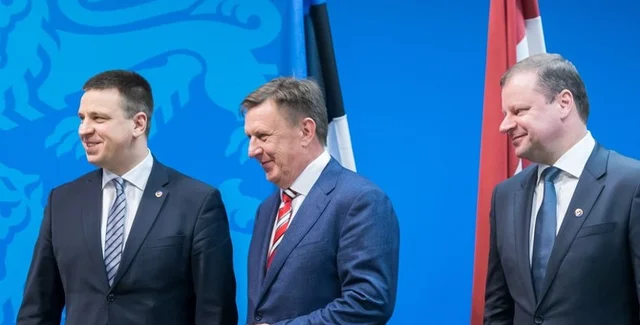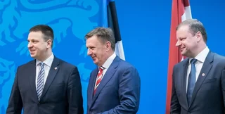 Слева направо: Юри Ратас, Марис Кучинскис и Саулюс Сквернялис \ Фото:Postimees