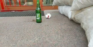 Кроме блоков и открыток, они оставили у дверей банка шину и бутылку с горючей смесью.