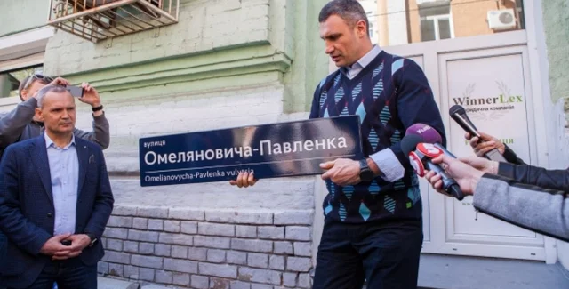 На табличках, которые показали мэру, латиницей написаны не только названия улиц, но и само слово улица - vulytsia. Вид табличек разработан дизайнерской группой "Агенты змин".