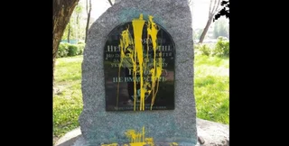 Памятную доску облили желтой краской