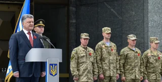 Порошенко также поблагодарил украинских военнослужащих за мужество в защите страны от российской агрессии.