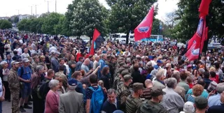В полиции рассказали, что на данный момент советская символика не зафиксирована. Митинги продолжаются, но ситуация спокойная.