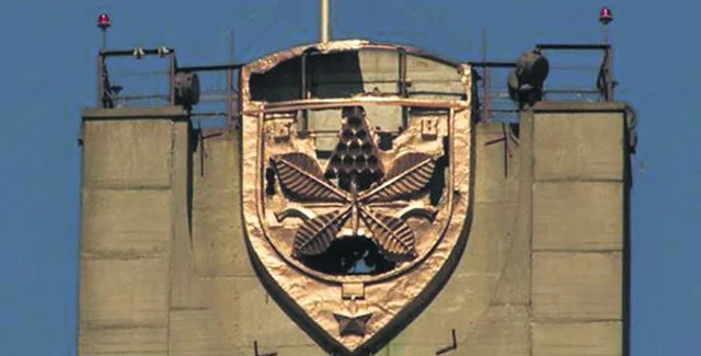 Вандалы ограбили герб Киева, который украшает верхушку Московского моста на высоте 80 метров.