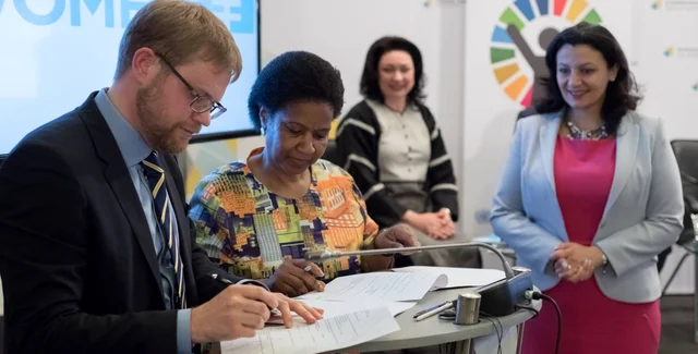 Исполнительный директор структуры "ООН Женщины", заместитель генсека ООН Фумзиле Мламбо-Нгкука и посол Швеции в Украине Мартин Хагстрем подписали соглашение о финансировании проекта "Гендерное равенство в национальных реформах и установлении мира и безопасности в Украине". Об этом сообщает пресс-служба вице-премьера Украины Иванны Климпуш-Цинцадзе.
