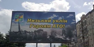 Выяснилось, что все дело в фотографии, использованной на билборде. Ее сделали боевики, когда осматривали обломки самолета и делали фото на их фоне.