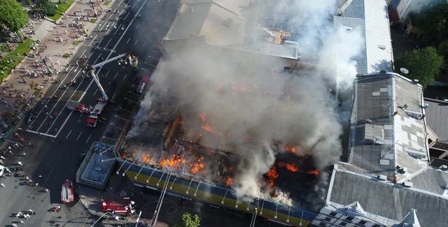 На улице Крещатик, 40 в центре Киева горит здание бывшего центрального гастронома. Об этом сообщает пресс-служба ГСЧС.