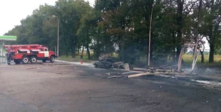 Инцидент произошел на 64 км автодороги Ковель-Киев возле села Загальцы Бородянского района. Водитель Daewoo столкнулся с газовым модулем на АЗС, в результате взорвалась емкость с газом с последующим горением.