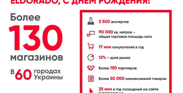 Виталий Гресько прокомментировал: "Уже 18 лет ELDORADO является ключевым игроком украинского рынка электроники. Я поставил себе цель сделать компанию безоговорочным лидером. Для этого будут реализованы стратегические планы во всех ключевых процессах. Я хочу вывести эффективность управления торговыми площадками и ассортиментом, а также качество обслуживания покупателей на принципиально новый уровень".