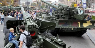 В центре Киева размещают военную технику и вооружение, которые продемонстрируют в рамках выставки "Мощь непокоренных", приуроченной к 26-годовщине провозглашения независимости Украины.