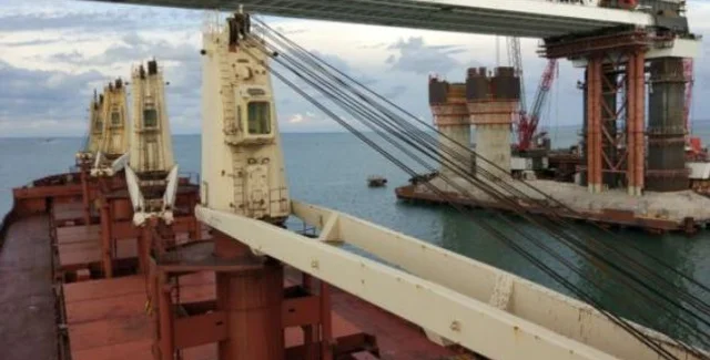 "Теплоходом, который первым прошел под аркой так называемого Керченского моста, стало судно "Копан". Загрузившись в Мариупольском порту 14,5 тысячами тонн чугуна, оно направилось в Италию. Зная о габаритных ограничениях при проходе через Керченский пролив в связи со строительством моста, судовладельцы укоротили мачту "Копана", что позволило ему благополучно пройти под сооружением", – пресс-службе украинского предприятия Мариупольский морской торговый порт.