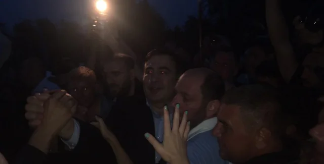Экс-глава Одесской ОГА Михеил Саакашвили перешел на территорию Украины и позирует журналистам.