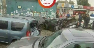 В Киеве на Броварском проспекте, возле станции метро "Лесная" в направлении центра, произошло ДТП, в результате которого столкнулись 6 автомобилей, один человек пострадал.