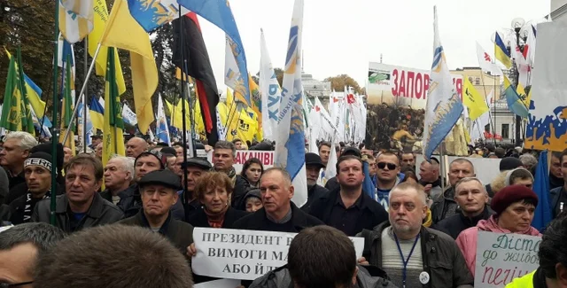 Участники акции протеста начали разбирать брусчатку под Радой.