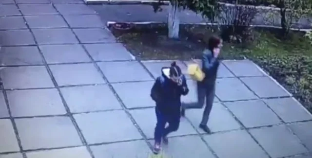 На первом ролике видно, как отец с коляской приехал в детский сад, а на втором – как ребенка несет женщина с дредами. Сперва она идет быстро, а потом начинает бежать.