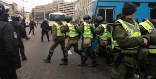 Спецназ полиции разблокировал зал Святошинского суда, где забаррикадировались сторонники лидера Добровольческого движения ОУН Николая Коханивского.