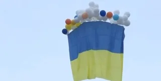В сторону оккупированных территорий Донбасса с украинской территории запустили огромный сине-желтый флаг на около 50 воздушных шариках.
