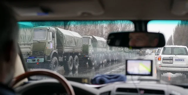 Наблюдатели ОБСЕ зафиксировали колонну военной техники, которая сначала была замечена возле Дебальцево Донецкой области, а потом, по мнению ОБСЕ, вероятно, эта же колонна направлялась в сторону Луганска.