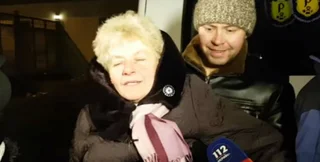 Мать освобожденного из плена Александра Олейника приехала в Борисполь, чтобы встретить сына. Когда женщина услышала голос сына по телефону, то потеряла сознание.