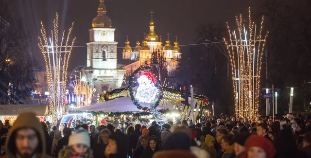 На Софийской площади столицы прошли народные гуляния в связи с приходом Нового года.