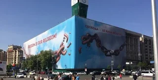 Напомним, Дом профсоюзов на Майдане Независимости в Киеве накрыли большим панно к Евровидению в 2017 году.