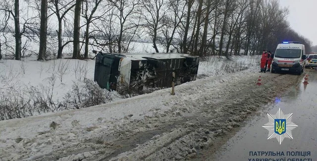 Во вторник, 30 января, утром, около 7:45, возле села Чкаловское Чугуевского района перевернулся автобус "Харьков – Купянск".