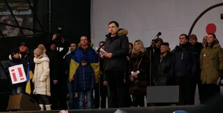 В ходе вече Саакашвили зачитал список украинских военных, погибших в январе этого года.