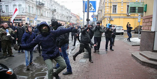 Националисты забросали камнями здания Россотрудничества и Сбербанка в Киеве