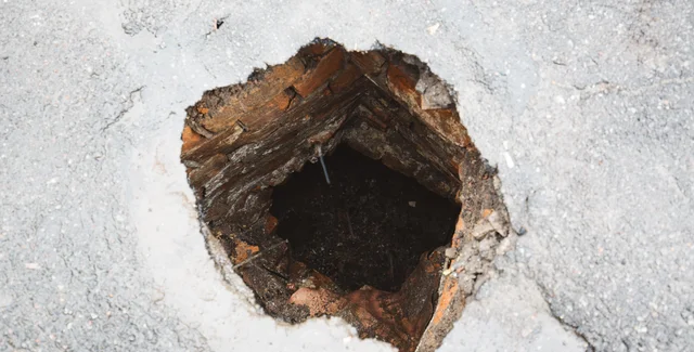 Скорее всего, провал образовался под действием длительных осадков. Работники музея рассказывают, что много лет назад неподалеку от этого места уже проваливалась земля и было видно входы в другие туннели. Однако пока они засыпаны землей и заасфальтированы. В нескольких метрах от пропасти недавно появилось еще одно: в нем можно увидеть выложенный кирпичом старинный колодец.
