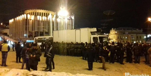 В субботу, 17 марта, на Европейской площади в Киеве возле гостиницы "Днепр" правоохранители заблокировали грузовой автомобиль представителей "Руха новых сил".