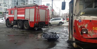 В Дарницком районе Киева трамвай столкнулся с грузовиком и сошел с рельсов.