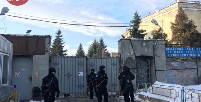 Сотрудники Национальной полиции проводят следственные действия на территории завода АТЕК, где находится штаб политической партии "Национальный корпус".
