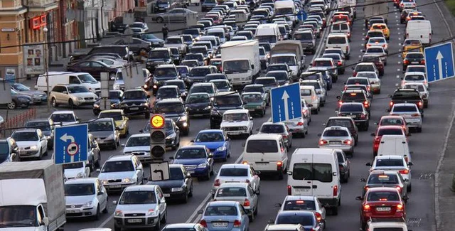Машины скопились в районе станции метро "Святошин" - неподалеку от завода "АТЭК"